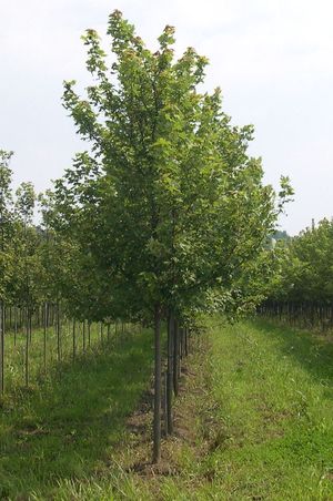 Red maple variety with a shapely, more compact head. Noted for its bright red foliage in the fall. Retains its foliage longer than common Red maple.