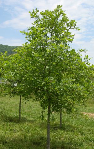Oval rounded to rounded habit at maturity. Leaves are shiny dark green above and light green beneath. Tolerates wet conditions.